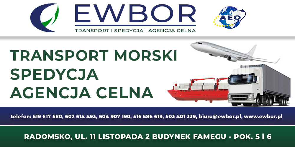 EWBOR jest firmą prywatną istniejącą od 1994 roku, rozpoczynała swoją działalność w zakresie transportu kontenerów . Siedzibą firmy jest Radomsko. Specjalizujemy się w przewozach kontenerów w kraju oraz zajmujemy się organizacją transportu kontenerów w imporcie i exporcie do i ze wszystkich portów świata. Oferujemy pełną obsługę spedycyjną na lądzie i na morzu. Firma posiada biuro portowe w Gdyni, świadczymy wysokiej jakości usługi, dbamy o interes zleceniodawcy i oferuje pełne zadowolenie każdego klienta. Specjalizujemy się w przewozach kontenerów w kraju oraz zajmujemy się organizacją transportu kontenerów w imporcie i exporcie do i ze wszystkich portów świata. Oferujemy pełną obsługę spedycyjną na lądzie i na morzu. Firma posiada biuro portowe w Gdyni, świadczymy wysokiej jakości usługi, dbamy o interes zleceniodawcy i oferuje pełne zadowolenie każdego klienta. Oferujemy: TRANSPORT - Nie ma dla nas miejsca na ziemi do którego nie bylibyśmy w stanie dostarczyć Państwa ładunku. Naszym zróżnicowanym taborem własnym, obsługujemy wszystkie kraje Europejskie. Jednak w odróżnieniu od konkurencji, nasza firma, w oparciu o stałe umowy z wieloma przewoźnikami, świadczy dla Państwa usługi w zakresie szeroko rozumianej spedycji ładunków. Transport plandekowy, kontenerowy, chłodniczy, ponadgabarytowy MAGAZYNOWANIE - Proponujemy klientom najbardziej korzystną lokalizację magazynu w najbardziej strategicznej lokalizacji na terenie całej Polski (centrum kraju) wraz z najlepszymi warunkami umowy najmu oraz przechowywania towarów. W zakresie wynajmu powierzchni magazynowych firma EWBOR oferuje wyjątkowo atrakcyjną  infrastrukturę drogową. Lokalizacja posiada już dostęp przyszłej autostrady A1 oraz bliską okolice węzłów autostradowych, która oferuje najbardziej atrakcyjne miejsce oferowanych magazynów. TRANSPORT LOTNICZY TOWAROWY to jedna z najdroższych form przewozu towarów. Posiada jednak ona wiele zalet i w wielu sytuacjach jest niezastąpiona. Jest również jedną z najbardziej dynamicznie rozwijających się gałęzi transportu. Odbywa się za pomocą specjalnie dostosowanych samolotów towarowych. TRANSPORT MORSKI jest najbardziej ekonomicznym oraz bezpiecznym (najniższe ryzyko uszkodzeń i zagrożeń) rodzajem transportu. Spedycja morska umożliwia dostosowanie środka transportu do rodzaju przewożonego towaru – można skorzystać z wielu rodzajów statków, które są dostosowane do transportowania zróżnicowanych typów ładunków. SPEDYCJA KRAJOWA I ZAGRANICZNA - Pozwala ona na dostosowanie warunków przewozu do rodzaju towaru. Nie jest również ograniczony na przykład infrastrukturą kolejową, korzysta natomiast z sieci dróg, która z roku na rok jest coraz bardziej rozbudowana. Niewątpliwą zaletą, jaką posiada transport lądowy międzynarodowy jest dostarczanie towaru na zasadzie door-to-door – wprost do rąk odbiorcy. ODPRAWY CELNE - Każdy towar, który jest importowany do Unii Europejskiej spoza jej terenu lub z niej eksportowany musi zostać poddany odprawie celnej. Odprawa celna importowa i odprawa celna eksportowa polega na sprawdzeniu przewożonego towaru oraz jego dokumentacji. Każdego dnia dbay o zadowolenie naszych klientów co udaje nam się także udokumentować: nasze certyfikaty i licencje